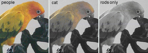 Here a though, if the only form of life with this vision system is on the earth there may be no colour anywhere else in the universe.