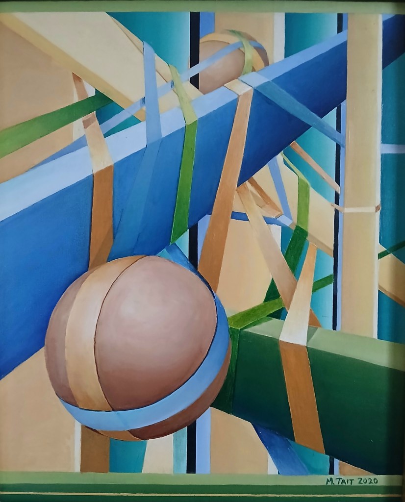The three ribbons in the work allude to each of these facets of life and the tangle we struggle with daily. The spheres are symbols of life and living, and whilst much of the time I feel in control of my destiny the more I look back the more I see how much chance and circumstances play in our lives. Some choices we make will be successful and seem to be made completely by our will but they are also dictated by the circumstances around us at the time, and at other times it seems we can’t achieve or get to where we want to be because of circumstances beyond our control.