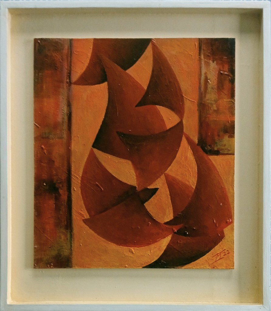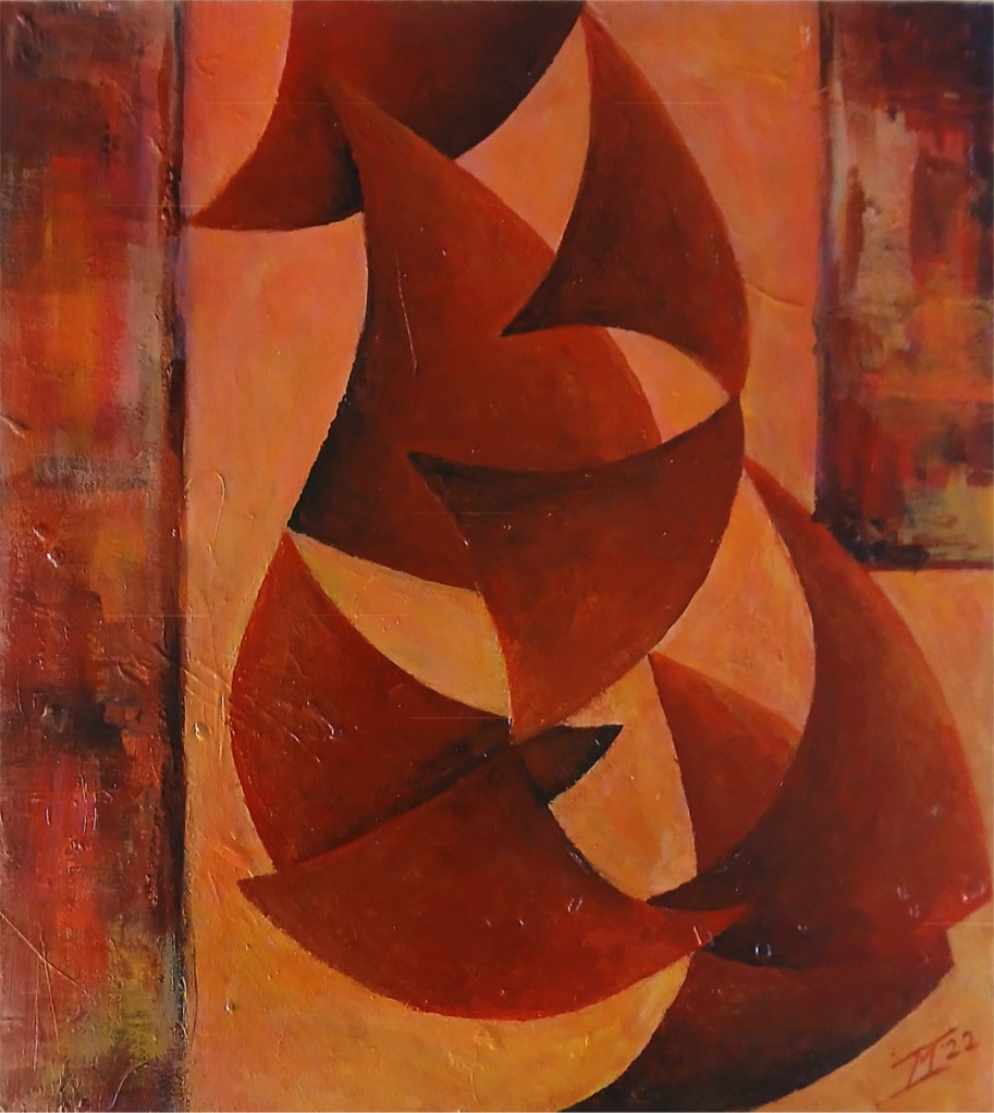 “Red Sails in the Sunset” created 2022 (from the song title series) Acrylic on wood panel, Image: 34.7 x 30.4 x 0.6 cm, Frame: 50.6 x 40.7 x 3.5 cm