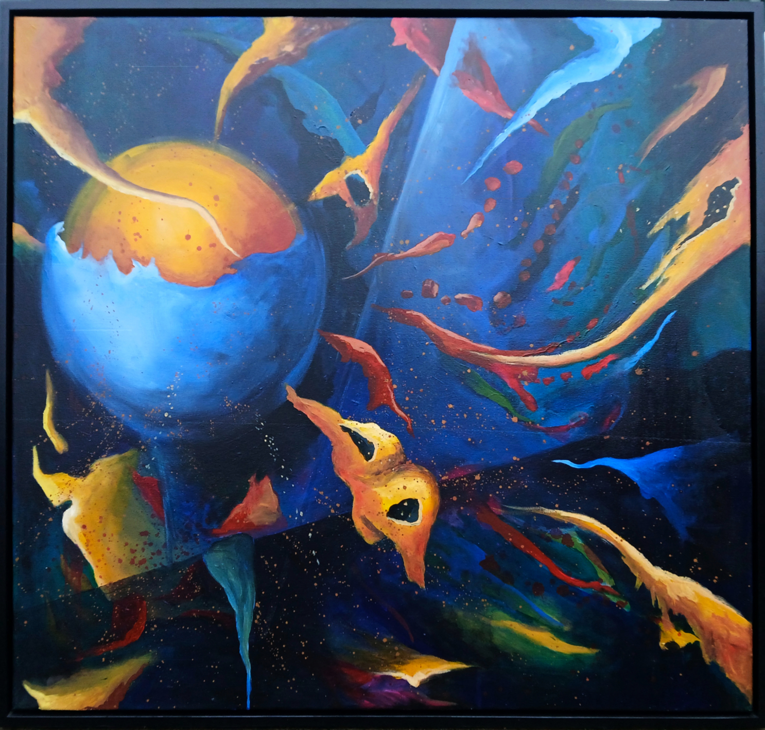 Acrylic on Canvas 122 x 132 x 2.8 cm. Framed: Painted black float frame. 128 x 138 x 4.4 cm Completed March 2022