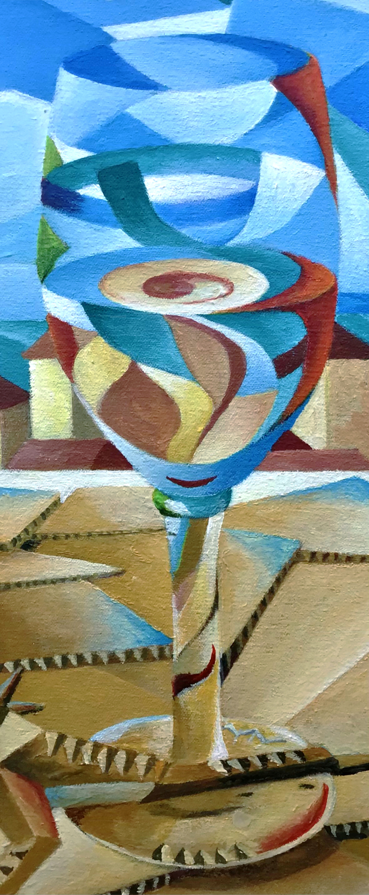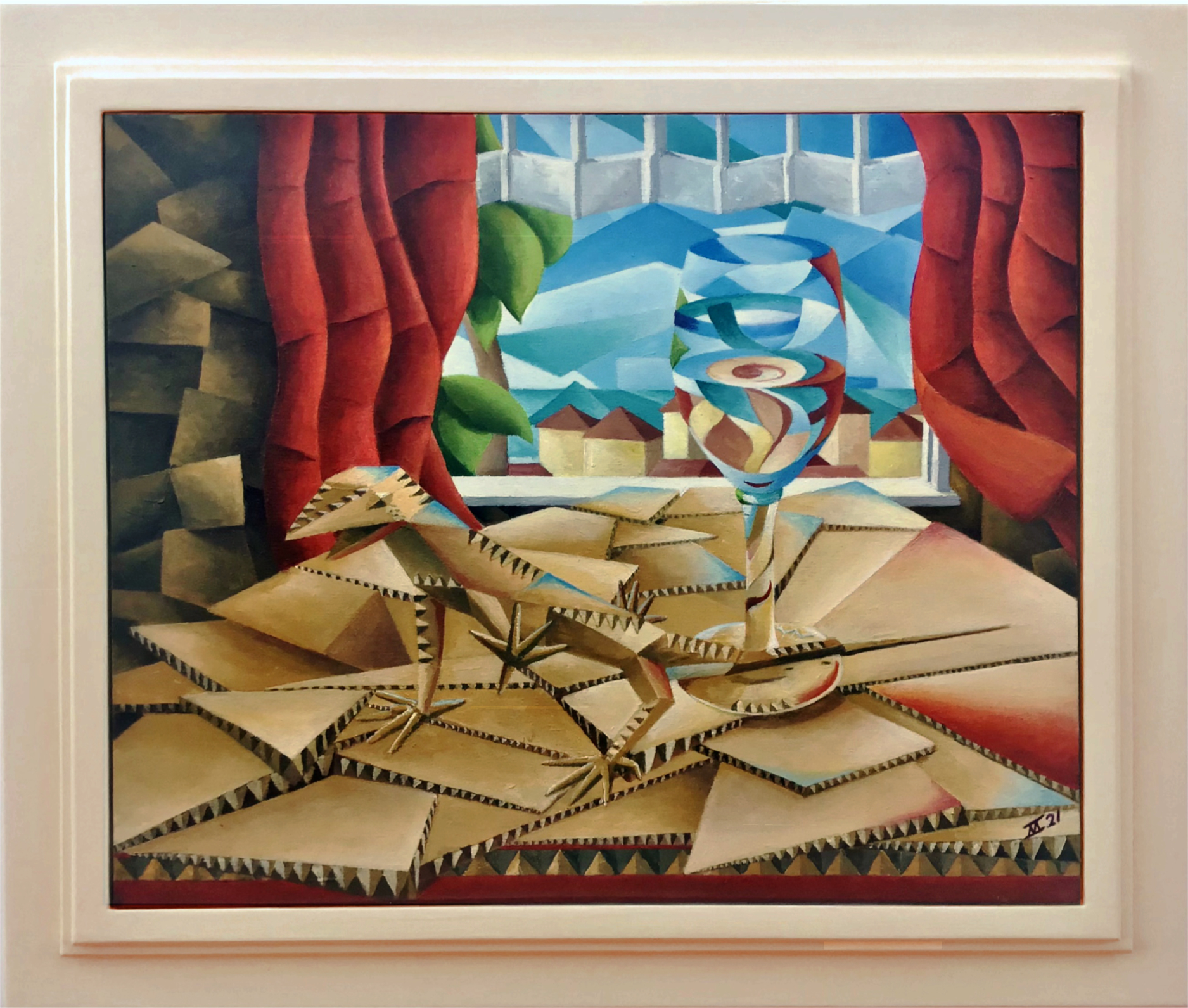 Made in 2021, at a time my interest in colour theory and shape deepened, shape is the primary method of recognition, but colour adds depth and emotion. The work is acrylic on canvas, frame size: 66 x 76 x 5cm, image size: 50 x 60 x 4cm.